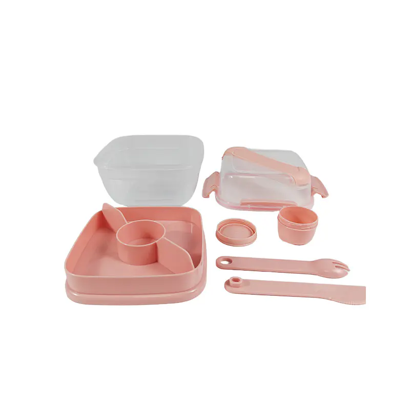Our 2-Layer Eco Lunch Box Wholesale for adults with utensils contains 5 practical compartments and 2 sauce dressing containers, is perfect for putting your pasta, chicken, salad, sandwich, fruit, snacks or sushi in it and enjoy it when and where you like. Five compartments help to plan a well-balanced diet not only for men and women to keep fit, but also for girls and boys to have a comprehensive nutrition.