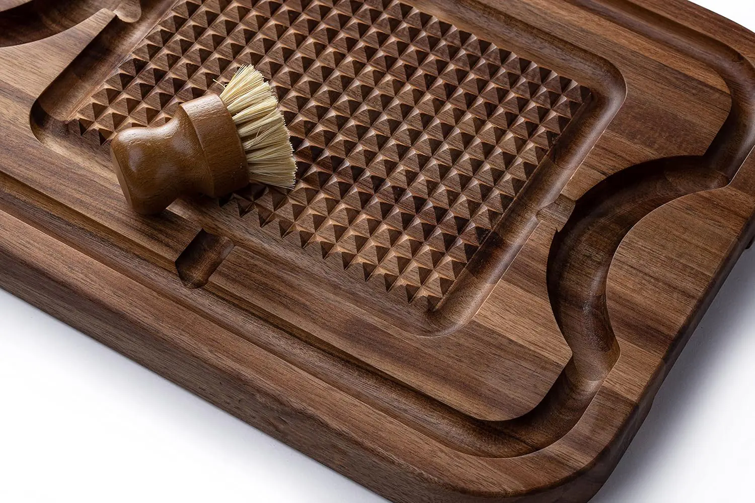 Texturized Central Grid Helps You Chop, Dice & Prep with Confidence | Small Individually Cut Pyramid-Shaped Spikes Hold Meat in Place, So You Can Achieve Perfect Uniform Slices Every Time | Set Includes a Cleaning Brush Tool for Releasing Excess Food from Board