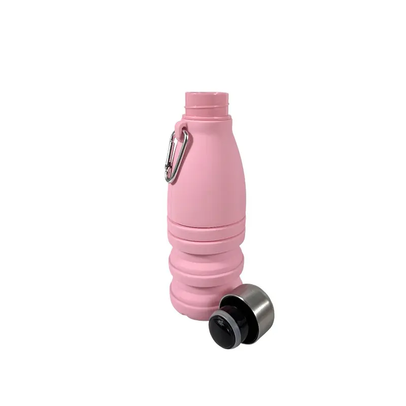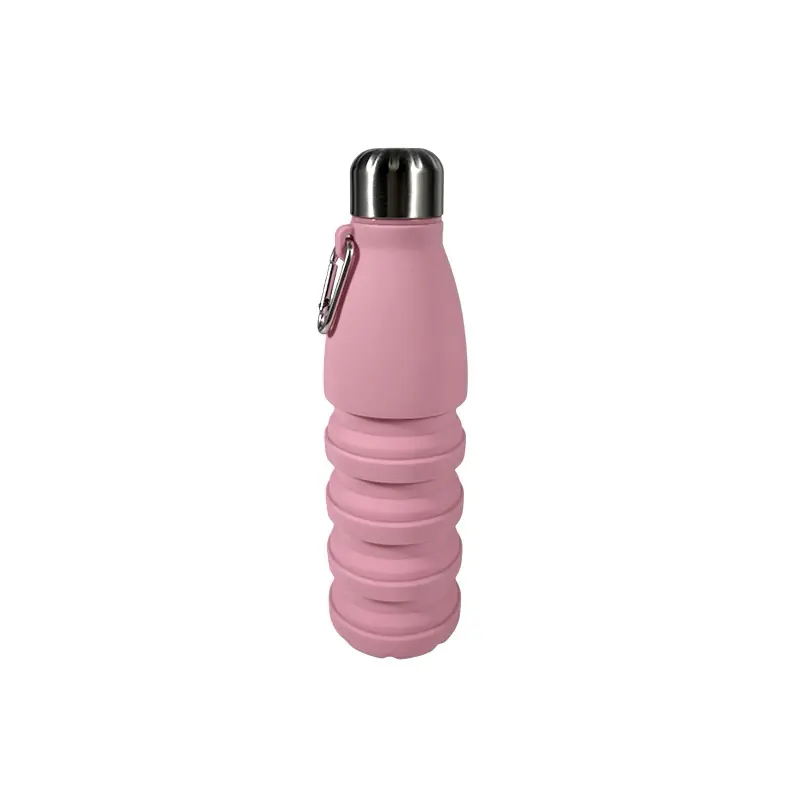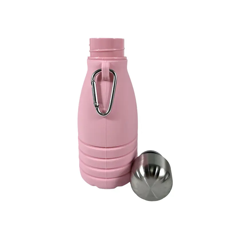 Collapsible Silicone Water Bottle with Metal Lid & Carabiner – Pink Wholesale