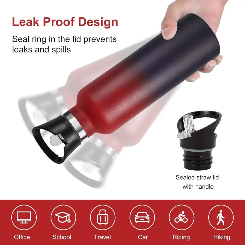 The double wall bottle with straw lid has a double-wall exterior with a vacuum seal between the walls, keeping your beverage hot or cold for hours. Like all other Neihepal products, this bottle is BPA free. The bottle is leak proof. Made from premium 18/8 Stainless Steel , this bottle is highly rust resistant.