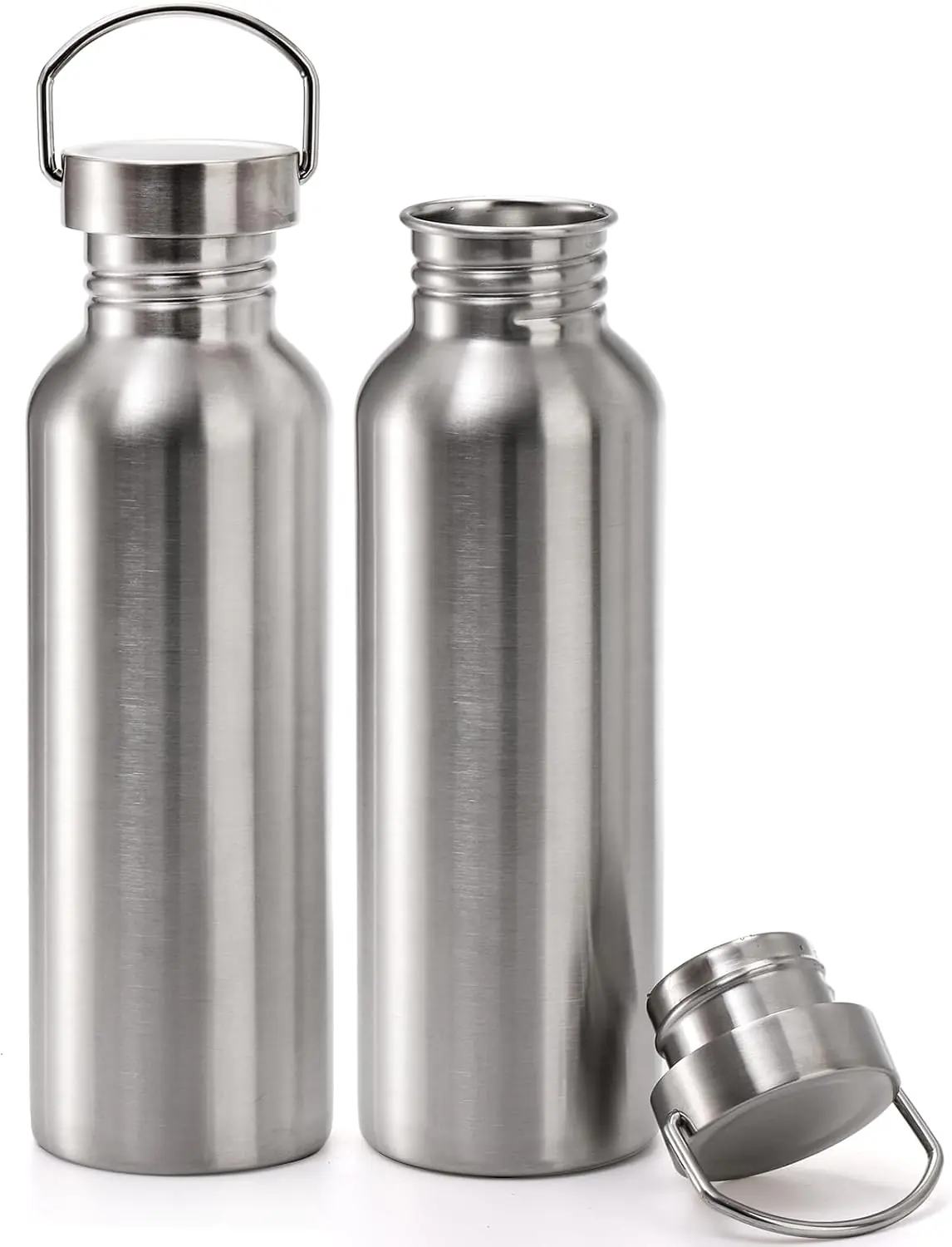 The single walled uninsulate metal water bottle cap is made of all steel, which make it leak proof and has a heavy duty thread to help it stay firmly attached, with inner silicone ring ensures no leaks.