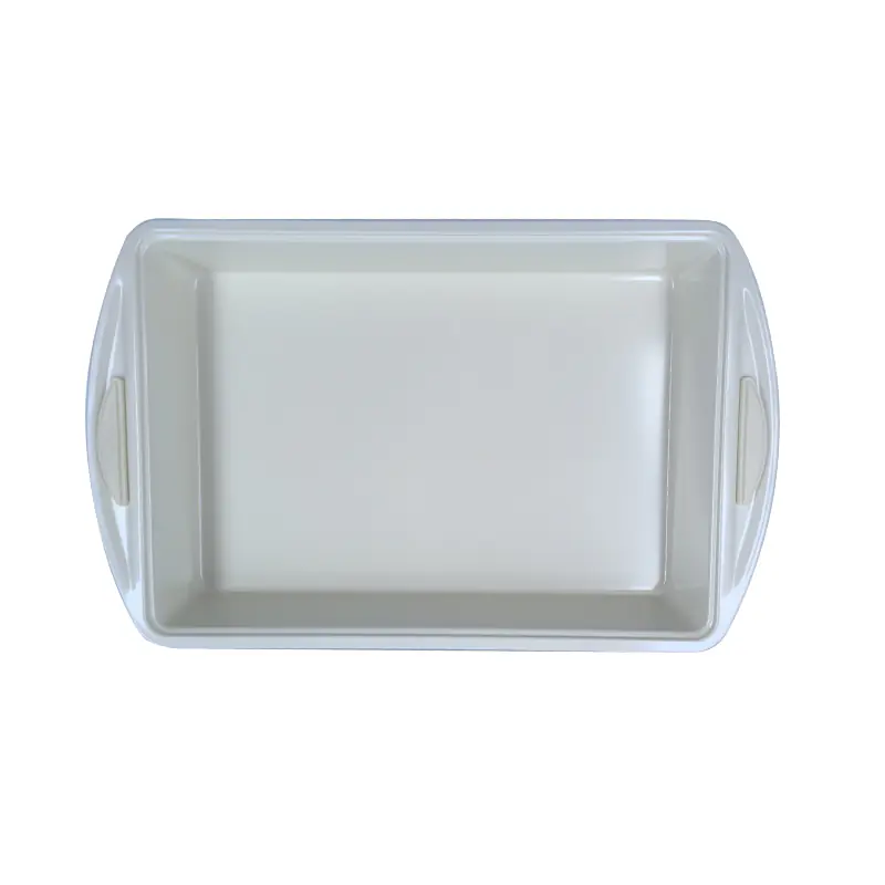 The Baking Pan With Silicone Handle showcases a stackable design, allowing for convenient storage while saving space in your kitchen. It is fully compatible with standard and convection ovens, making it a versatile addition to your baking tools. Suitable for use not only in the oven but also in the refrigerator and freezer, this pan is perfect for all your baking needs.