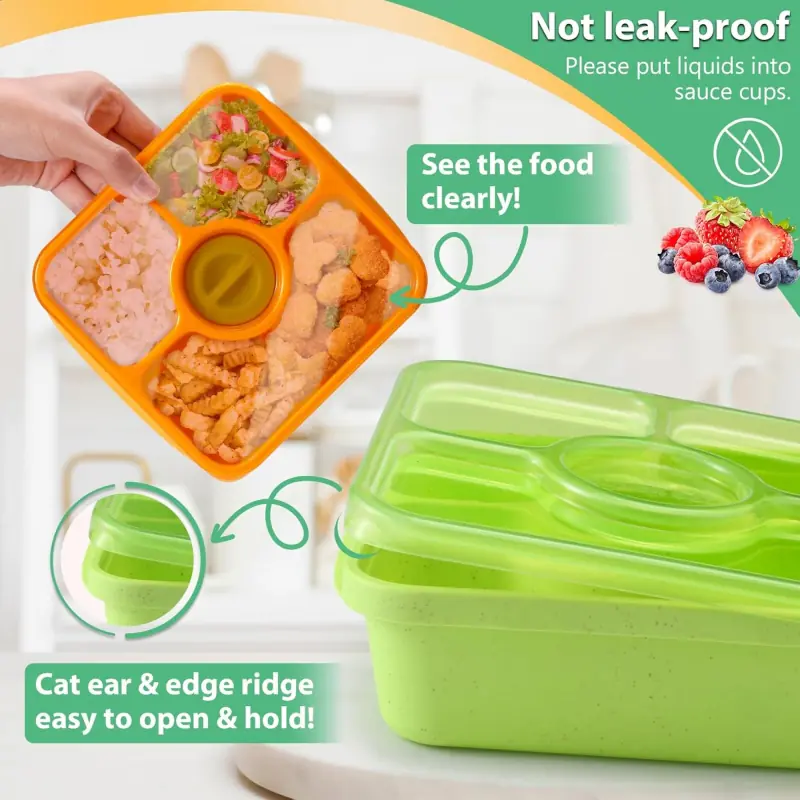Add color to your meal prep with our 4-pack bento boxes in soft macaroon hues. Each container holds 750ml (25oz) and features 3+1 compartments, plus 4 bonus sauce containers for dips