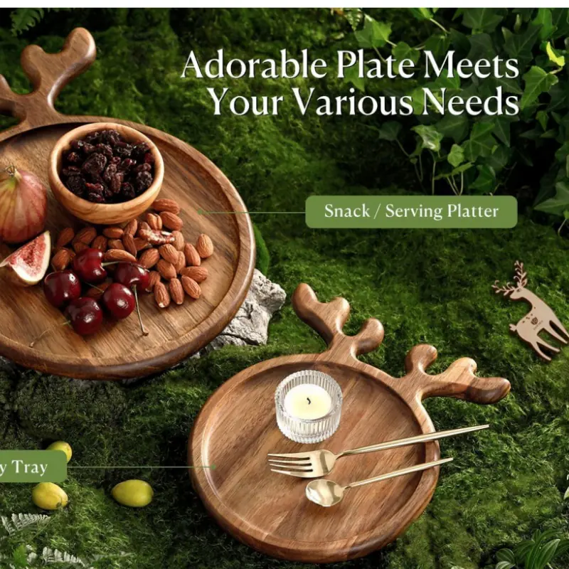 This wood serving platter is inspired by the beauty of deer and designed by Dofira USA team. With non-slip pads, Christmas Decorative Reindeer Antler Serving Board can stay flat and is not easy to bend. The lovely antler complements the natural hues of grains making it not only a kitchen utensil but also a home decoration! Treat your guests at gatherings, everyone will be conquered by its beauty.