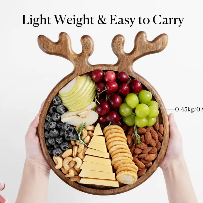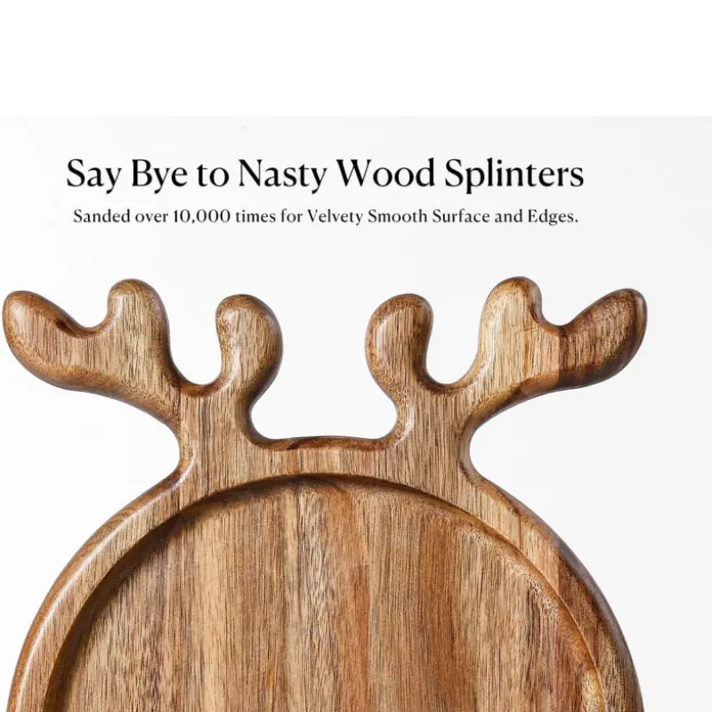 Made of 100% premium acacia wood from Thailand, only select the best 50% of the wood without any defects like scars or wormholes, our Christmas Decorative Reindeer Antler Serving Board is sturdy, not easy to crack or deform, and can last for years! The velvety smooth finish will not create harmful chemicals or wood splinters to stain the food. Go ahead and savor your delicacy!