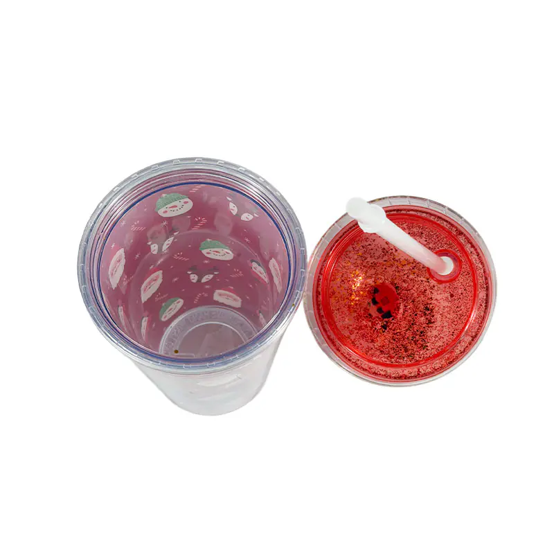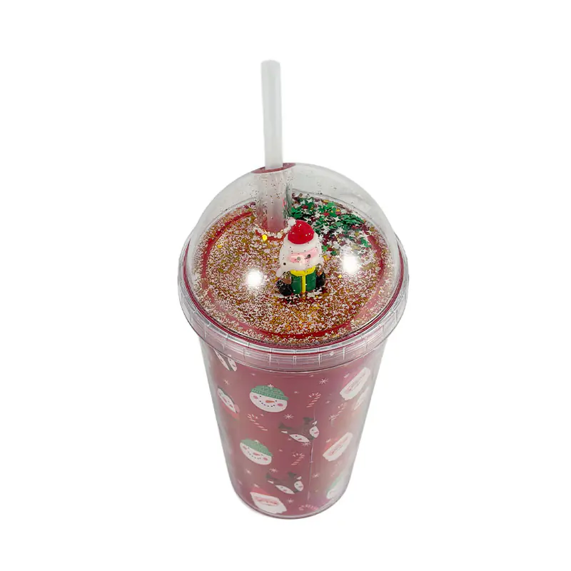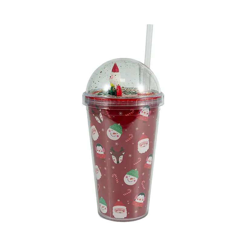 The Christmas Snow Globe Tumbler Wholesale is constructed with a sturdy double-layer plastic body that reduces condensation and improves cold drink insulation. Its strong build ensures it withstands daily handling, making it suitable for both home use and retail sales during the busy holiday period.