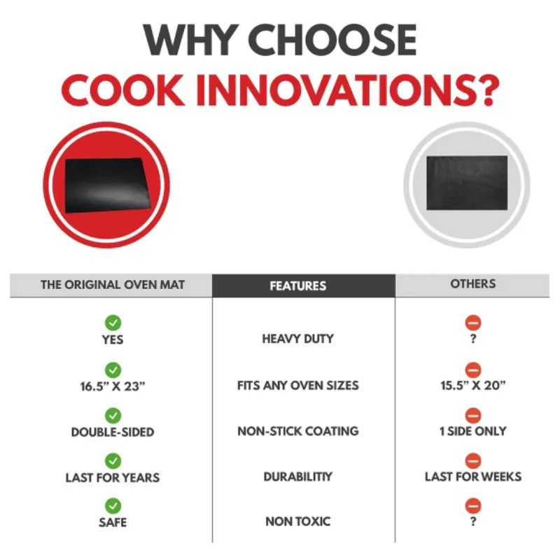 Don’t stress out about stubborn oven rack guards. Our Cooks Innovations Non-Stick Oven Protector Mat for air fryer basket can be easily removed and washed in the dishwasher. You can also clean our Cooks Innovations Non-Stick Oven Protector with just one wipe by hand!