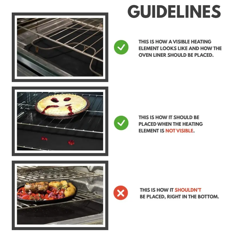 Our 100% non-stick PTFE toaster oven tray lining keeps the bottom of your oven clean when placed on an oven rack below whatever you’re baking! Our oven guard protects your oven from spills, drops, and drips from pies, casseroles, pizza, and more before they burn and stick. Eliminate a tedious chore with our oven liner!