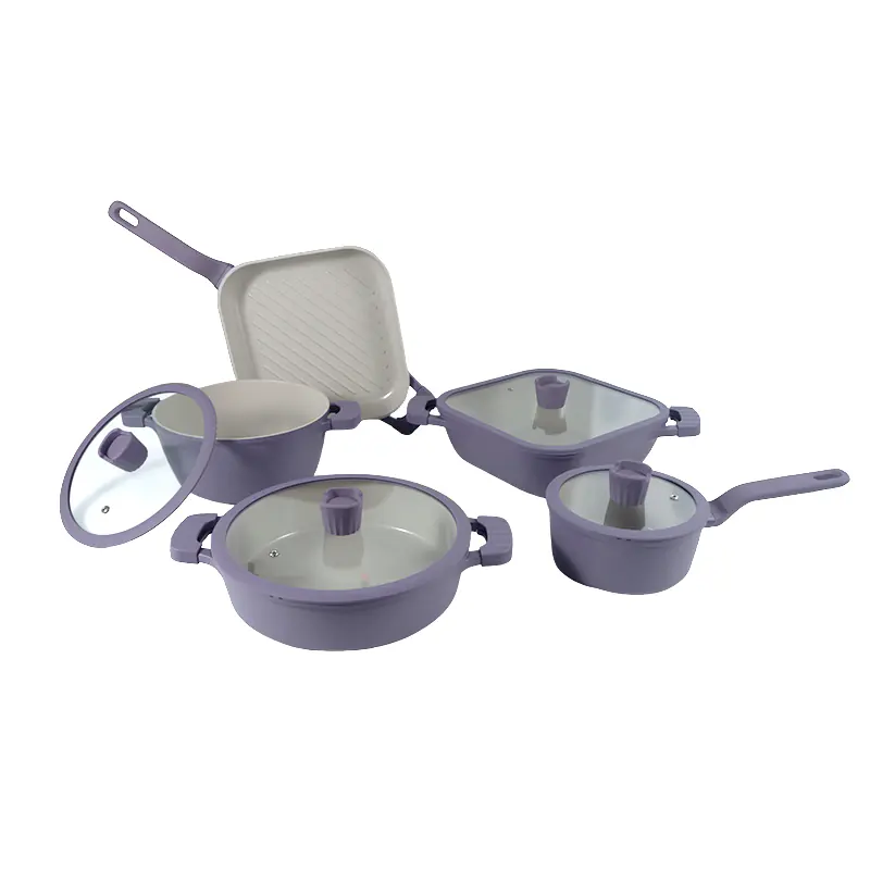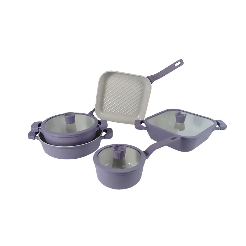 The DIE-CAST ALUMINUM COOKWARE OCEAN WAVE SERIES heats up quickly and evenly, featuring an extended bottom design suitable for all cooktops, including induction.