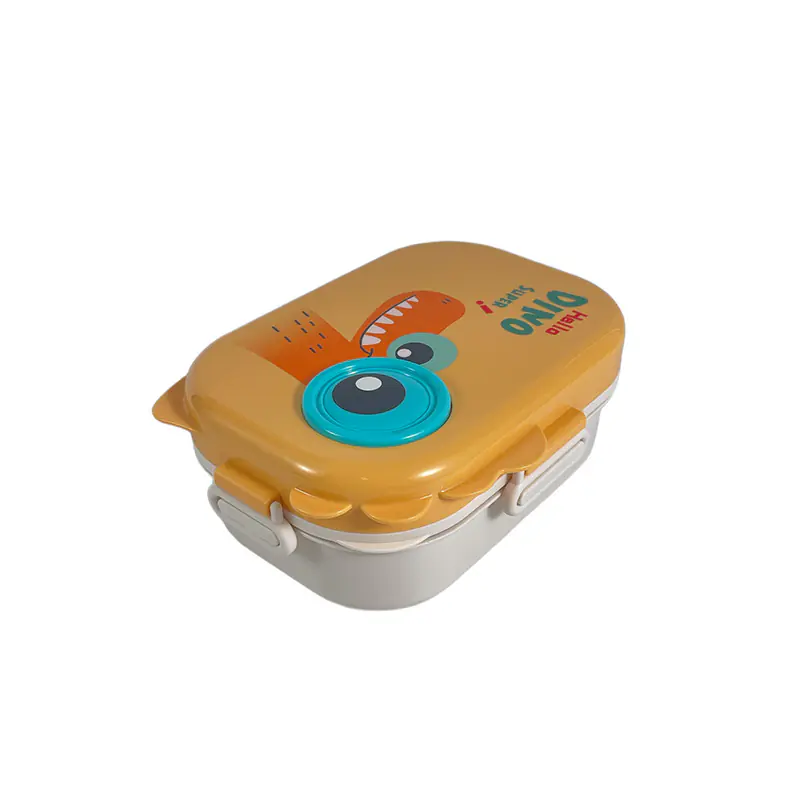 To sum up, this dino - themed kids lunch box with utensils is a fantastic option for wholesale. Its charming design, thoughtful compartment layout, handy utensil and sauce container, and secure latches make it a hit with kids and a reliable choice for parents. It combines fun and functionality, ideal for suppliers.