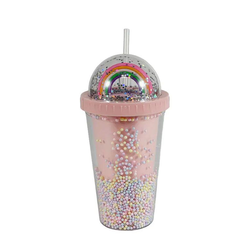 The Colorful Double-Layer Kids Tumbler Wholesale blends creativity, kid-friendly durability, and standout visual charm. With its rainbow dome lid, floating glitter, and pastel bead-filled design, it offers both functionality and delightful aesthetics—an ideal option for distributors and retailers seeking unique children’s drinkware.
