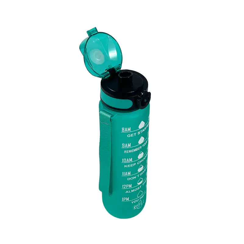 Stand out with its bold, solid teal color that adds a fresh, energetic touch to your daily essentials. The 1L Plastic Water Bottle features clear, printed hydration markers along its surface, guiding you to track water intake throughout the day—ideal for fitness enthusiasts, busy professionals, or anyone aiming to meet daily hydration goals. A matching teal flip-top lid adds a cohesive look, while the attached lanyard provides easy carrying, blending style with practicality.