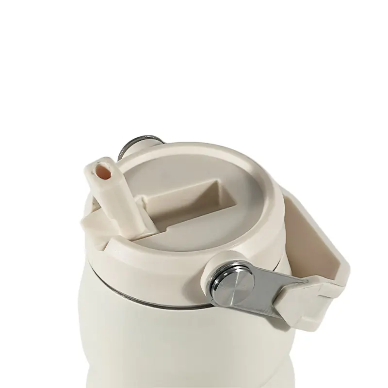 This Tumbler with Handle and Straw Features a foldable sipper nozzle for spill-proof and leak-proof sipping; allows for convenient one-handed use
