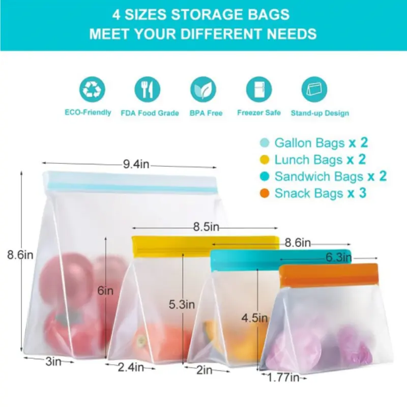 Bolsas reutilizables de silicona de alta calidad para almacenar alimentos al por mayor