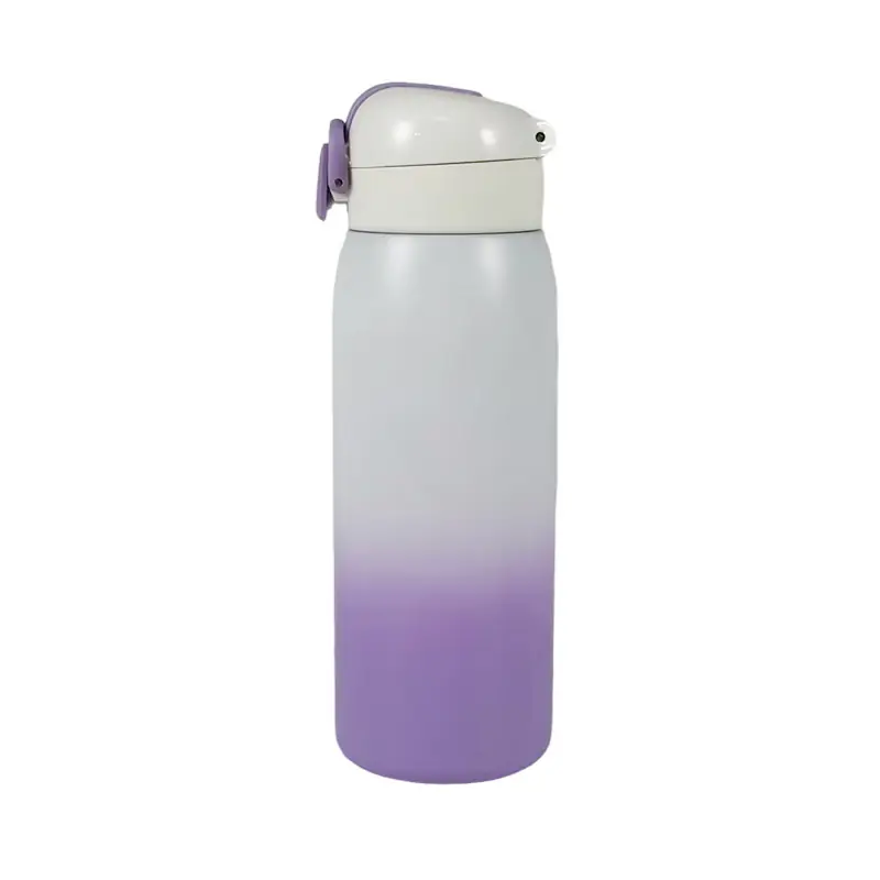 The smooth gradient finish transitions from soft white to rich purple, offering a playful, modern look that appeals to all age groups. This visually striking design makes the bottle ideal for gifts, promotional items, and daily use, standing out in competitive retail markets. As an experienced exporter, we know unique aesthetics drive customer engagement and wholesale sales.