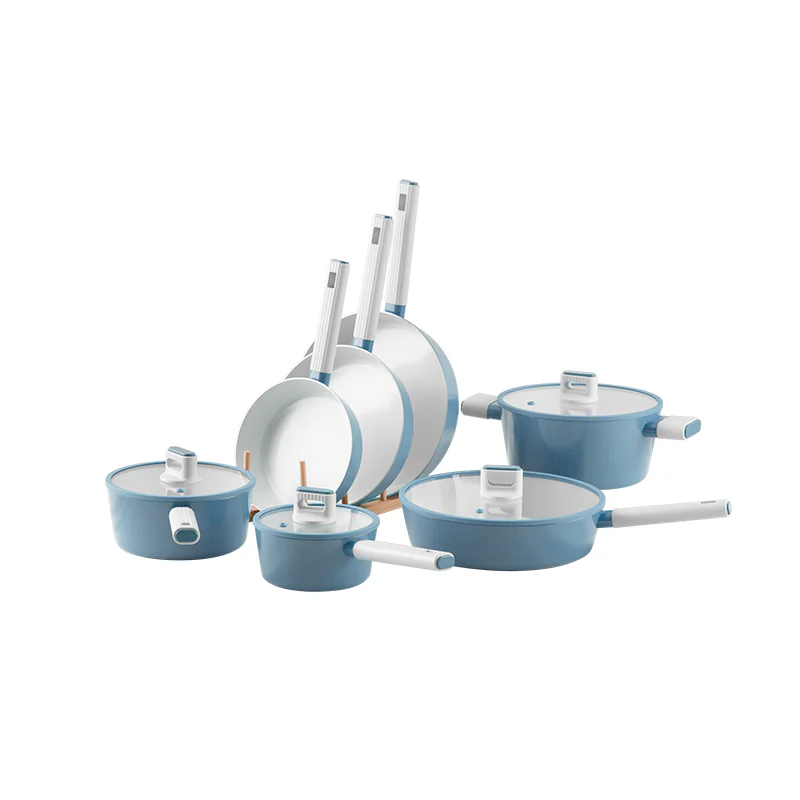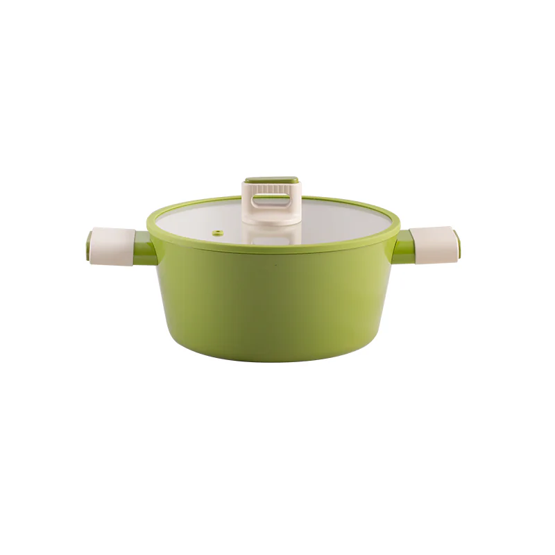 Los utensilios de cocina de este juego de aluminio verde con tapas de vidrio vienen con manijas ergonómicas. Estas manijas están diseñadas para ofrecer un agarre cómodo y seguro, lo que facilita el manejo de las ollas y sartenes mientras se cocina. Las manijas también se mantienen frías durante la cocción (cuando se utilizan en estufas adecuadas), lo que evita quemaduras y garantiza un manejo seguro.