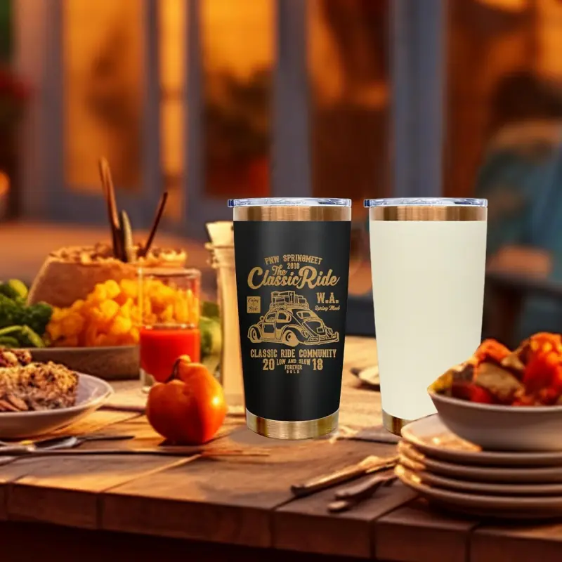 Gracias al recubrimiento en polvo, nuestros vasos de viaje aislantes son perfectos para grabados láser, calcomanías de vinilo o pinturas de colores. Puede crear su propio vaso personalizado con su propio diseño artístico.
