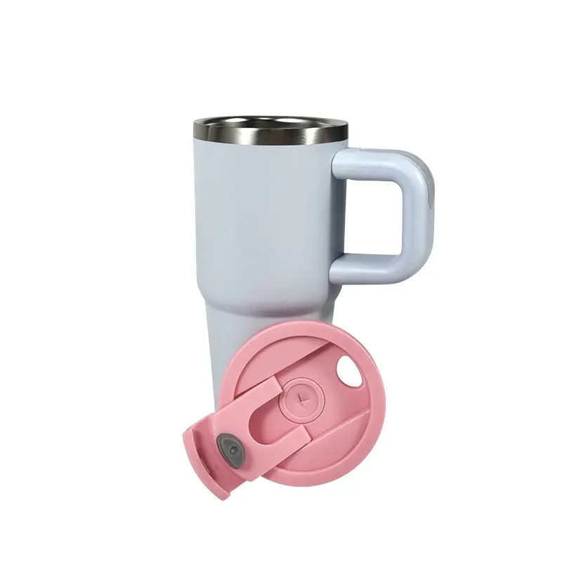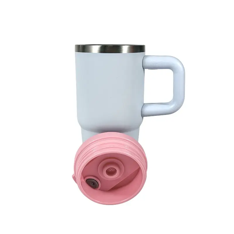 The Insulated Tumbler with Handle and Pink Lid combines practicality, durability, and a trendy design, making it a great option for anyone who wants to enjoy their drinks at the desired temperature with convenience and style.