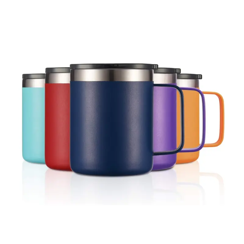 12 oz coffee mug is lightweight and easy to carry, the surface is matte powder coating, sweatfree, the coffee mug handle is long and wide, and it fits your fingers to grasp