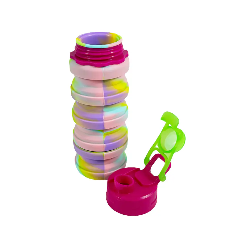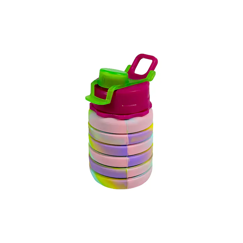 Constructed from premium-grade silicone, the Botella de agua plegable de silicona delivers both striking aesthetics and robust durability. Its vivid, swirled color scheme isn’t just visually appealing—it also signals top-tier craftsmanship. Silicone’s natural flexibility allows the bottle to endure drops, squeezes, and daily wear without cracking or leaking. Moreover, the food-grade silicone is non-toxic, so you can safely fill it with water (or other drinks) knowing no harmful chemicals will leach into your beverage, guaranteeing purity and longevity.
