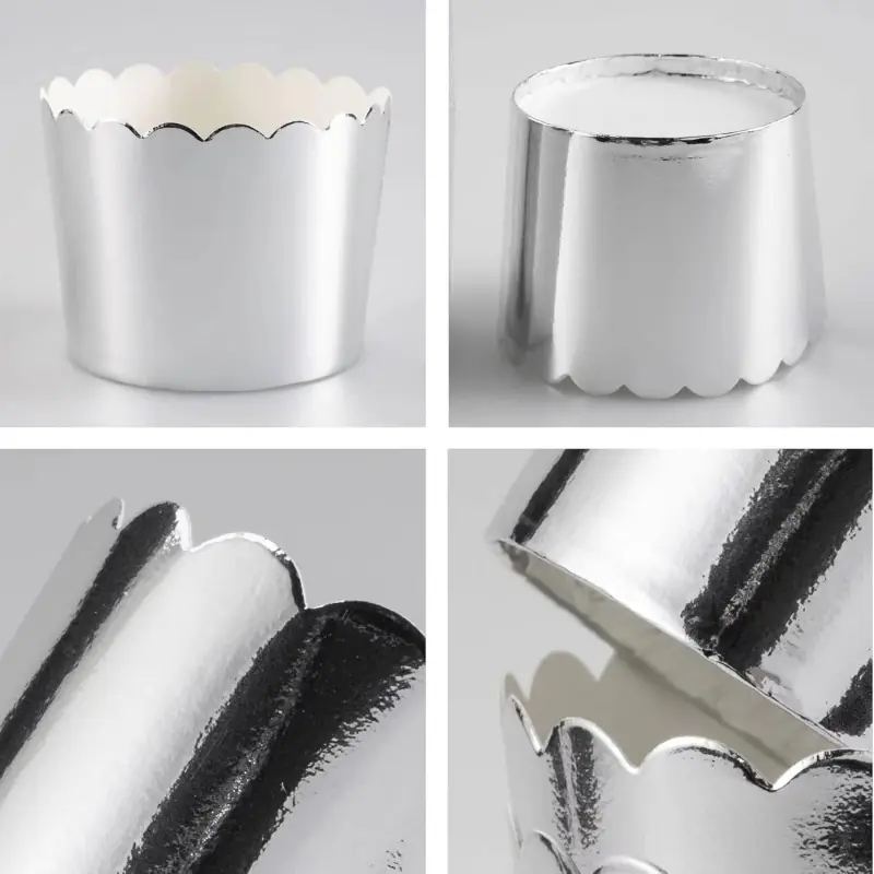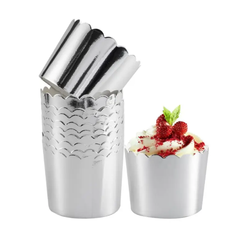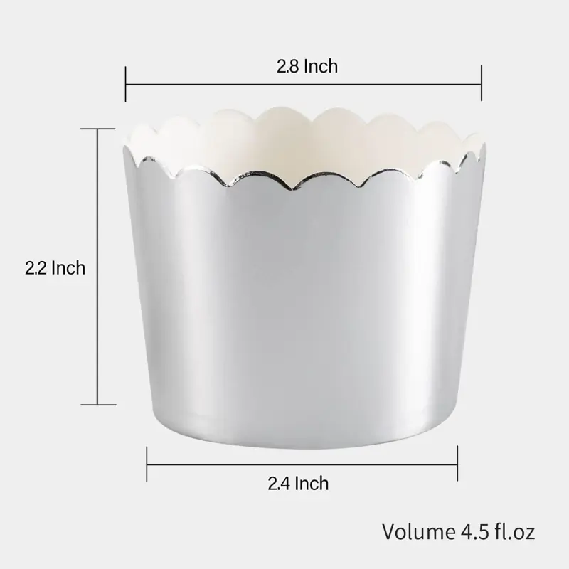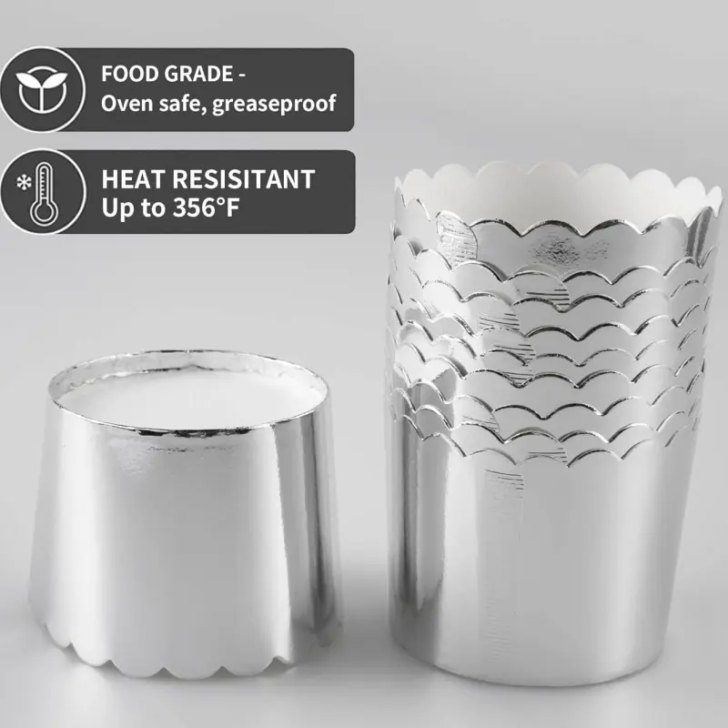 Greaseproof Disposable Cupcake Liners are made of food grade paper which coated grease water resistant liners inside, No smells, no poison, no leaking dyes, and the outside is still remain bright and shiny while baking your treats. Safe for oven.