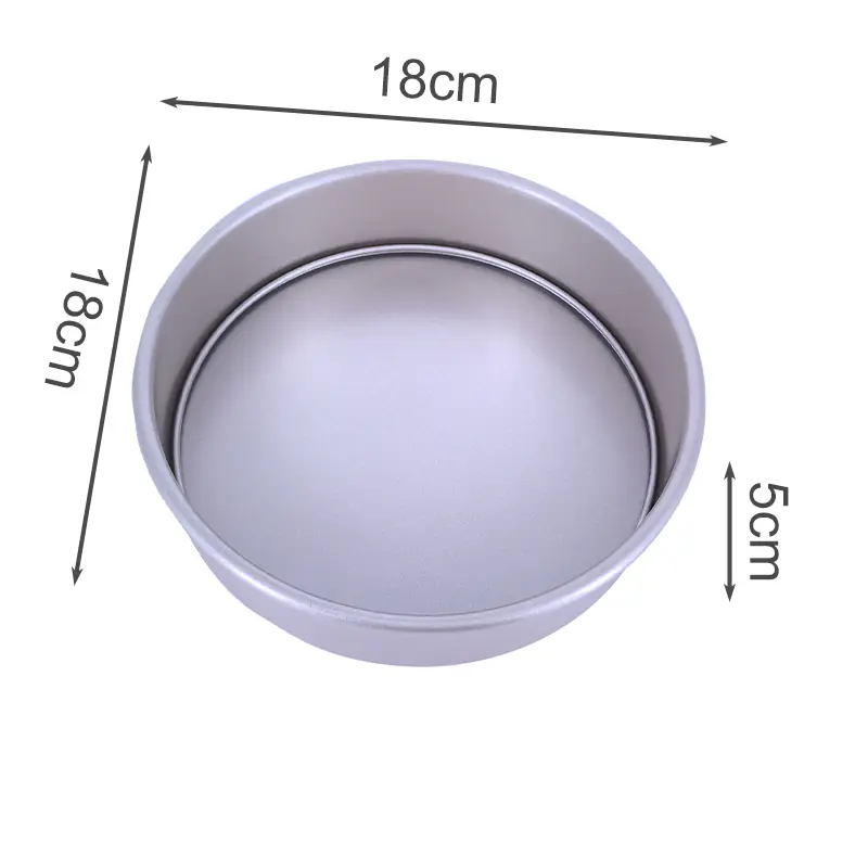 The grey circular baking mold, featuring an elegant color, smooth edges, and a metallic surface for efficient heat conduction, is an excellent choice for baking. It combines aesthetics and practicality, making the baking process easier and the final products more appealing.
