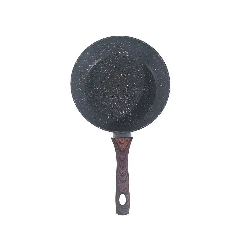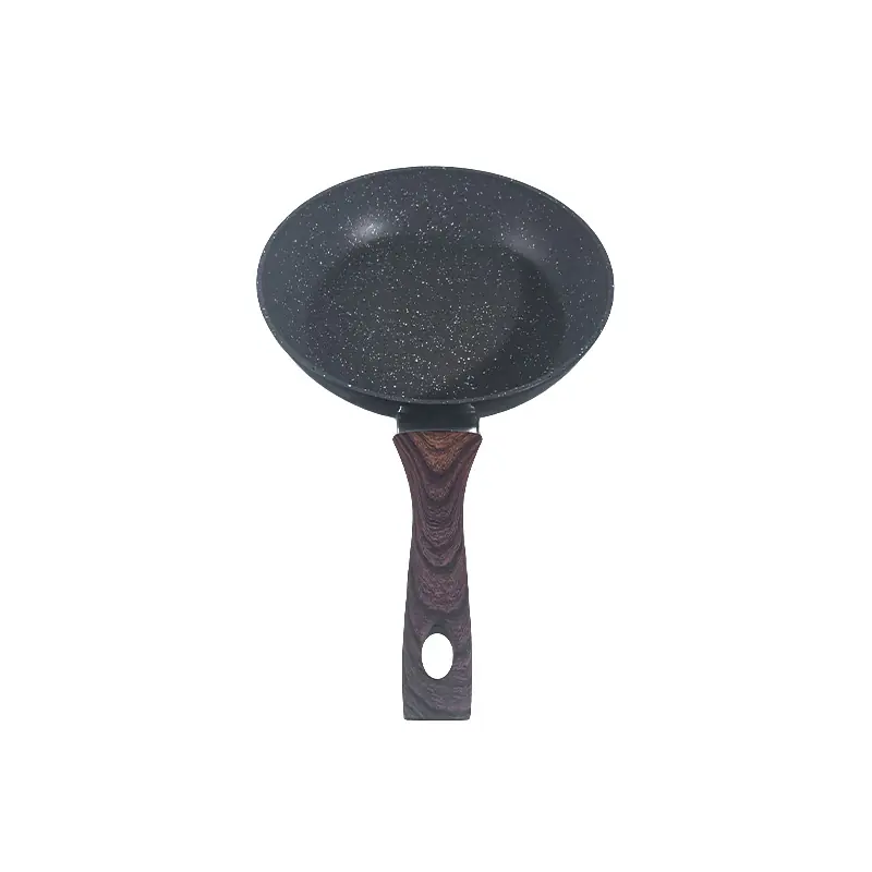 The pan comes with an ergonomic wooden handle. The handle offers a comfortable and secure grip, reducing hand fatigue during cooking. Moreover, it stays cool to the touch even when the pan is on high heat, enhancing safety while handling.