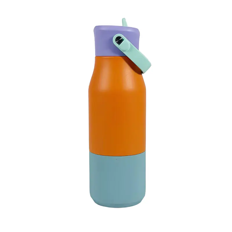 To sum up, this vibrant color-block stainless steel water bottle with a flip-top lid is an excellent wholesale option. Its playful color-block aesthetic, reliable insulation, leak-proof design, and portable size combine style and functionality—ideal for suppliers targeting families, students, and young consumers who value both appearance and practicality.