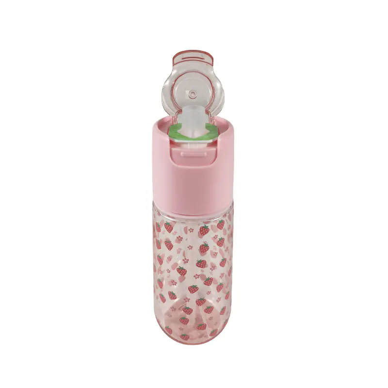 Adorable Kids Straw Water Bottle Wholesale features a charming fruit-pattern print that instantly appeals to children. The playful and colorful appearance encourages kids to stay hydrated while adding a fun element to their daily routine, making it ideal for school and outdoor use.