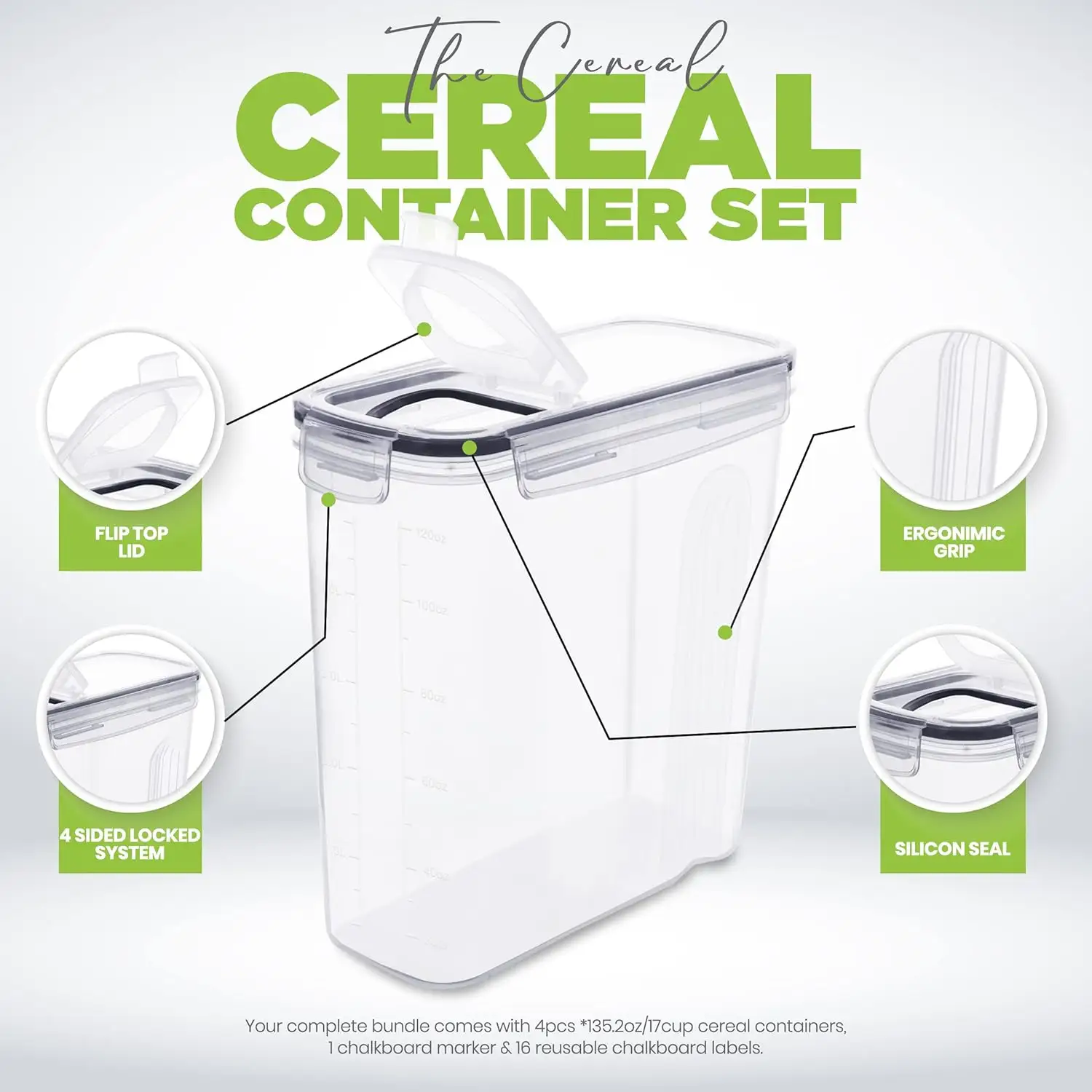 SET OF CEREAL CONTAINERS – This set includes high-quality cereal containers along with plain stickers and white chalkboard markers for easy labeling.