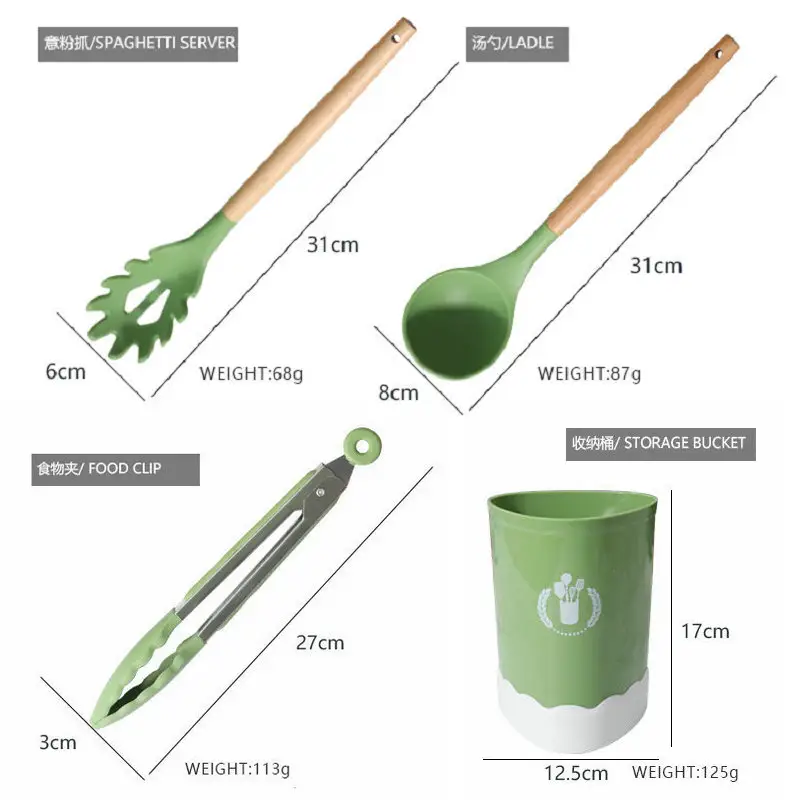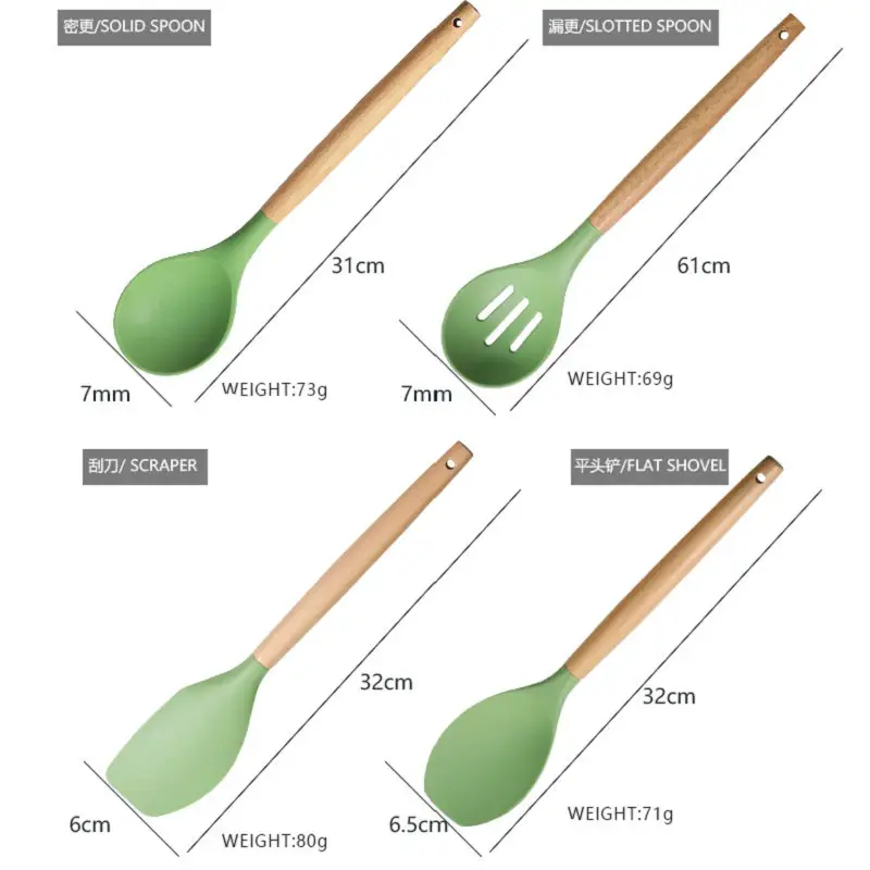 surface, Easy to clean by hands, The wholesale kitchen utensils set is heat-proof up to 446℉(230℃), No worry about melting in high heat, last longer than other plastic kitchen utensils