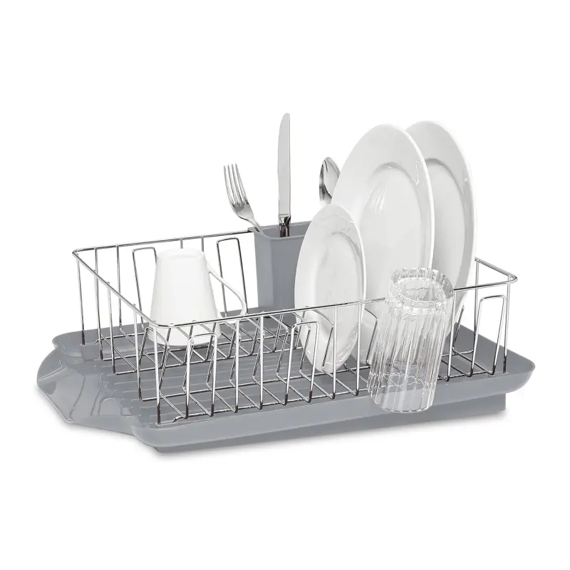 Large Capacity Dish Drying Rack,Quick assembly with no tools required; Removable components for thorough cleaning; Sleek gray finish complements modern kitchen decor