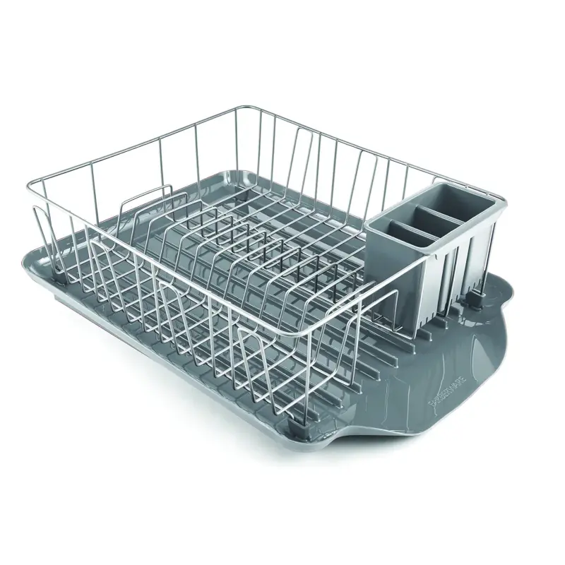 3-Piece Large Capacity Dish Drying Rack Set with Drainboard and Utensil Holder