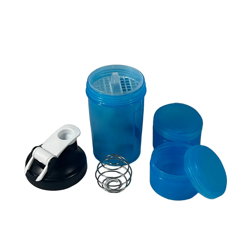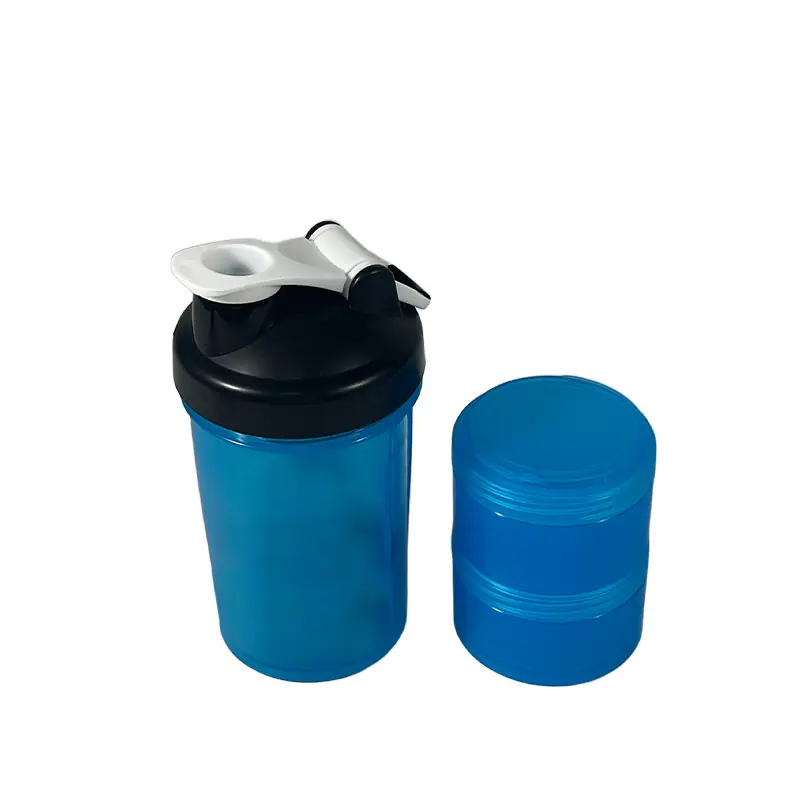This Protein Shaker Bottle includes measurement markings (oz/mL) and separate compartments for powders, pills, or vitamins. Ideal for pre/post-workout nutrition.