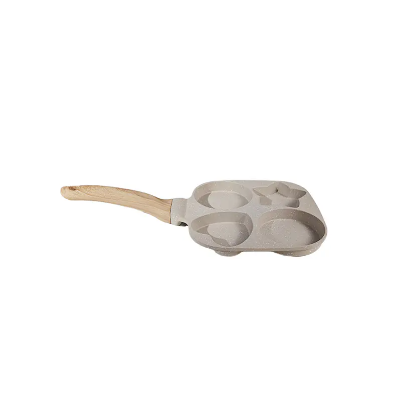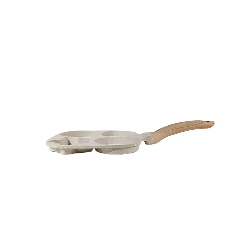 To sum up, this minimalist beige aluminum multi-compartment baking pan with a wooden handle is an excellent wholesale option. Its warm aesthetic, efficient aluminum construction, practical multi-compartment design, and non-stick easy-to-clean features make it a perfect tool for home breakfast or snack preparation. It combines style and functionality, ideal for suppliers.