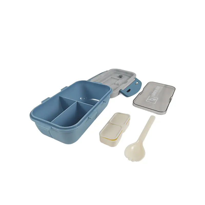 To sum up, this modern Lunch Box with utensils and containers is a great option for wholesale. Its contemporary design, functional compartment layout, included utensil and sauce containers, and secure latches make it a practical and stylish choice for anyone needing a reliable lunch solution. It combines functionality with a modern aesthetic, ideal for suppliers.