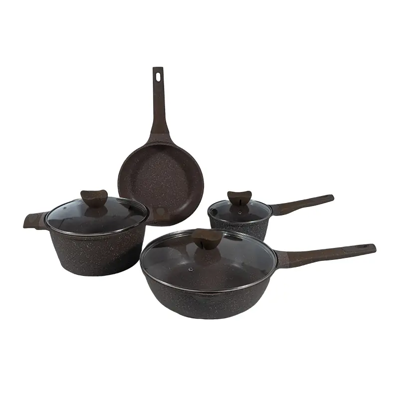 This non - stick aluminum cookware set with matching lids, combining non - stick aluminum for easy cooking and cleaning, matching glass lids for convenient monitoring, ergonomic handles for comfortable use, and versatile sizes for diverse cooking tasks, is a comprehensive solution for any kitchen. It simplifies meal preparation, enhances cooking efficiency, and provides all the essential tools for creating a wide range of delicious dishes.