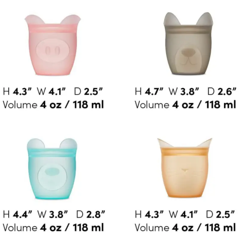 [six Reusable Kids Snack Food Storage 2.8″ x 3.8″ x 4.4″ (4 oz)] – a 2 bears, 2 pigs, 1 dog and 1 cat. Ideal for snacks on the go, meal prepping and food storage. A perfect registry gift!