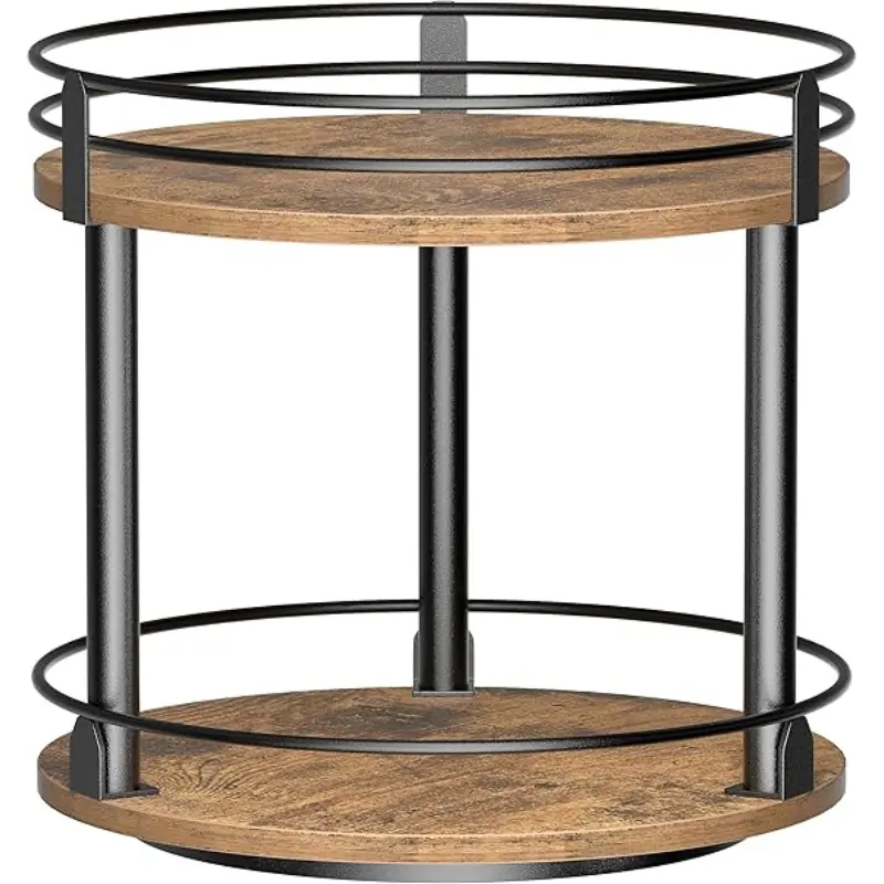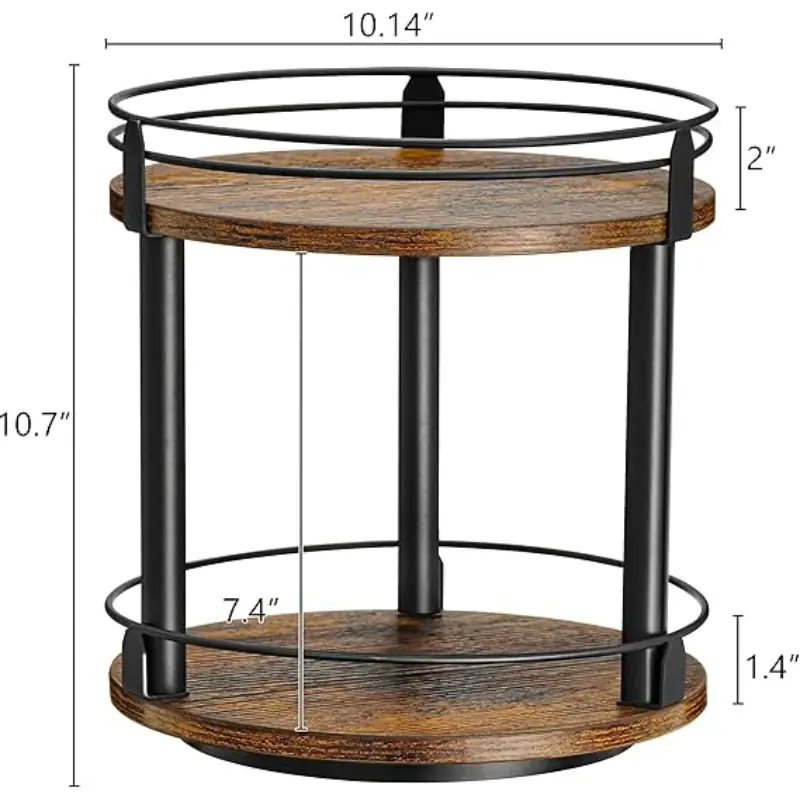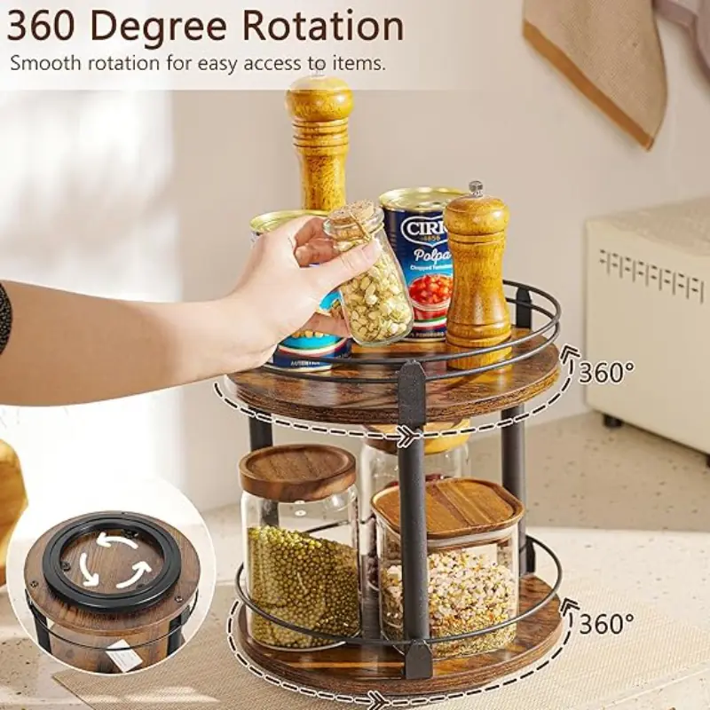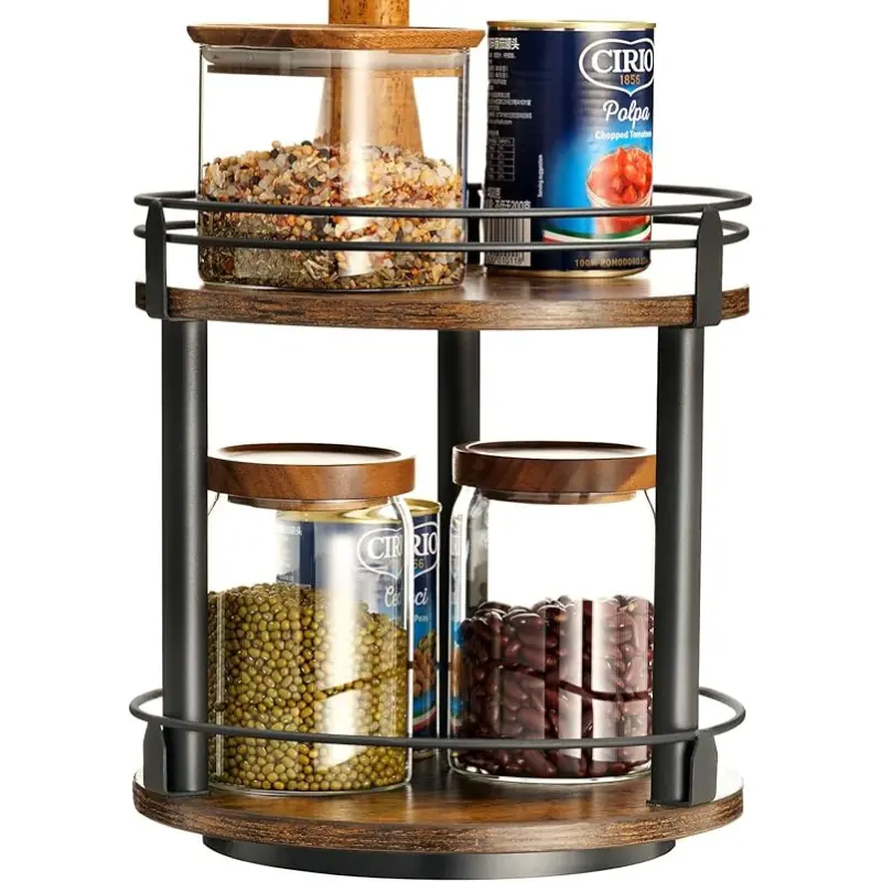 Its two - tier turntable design makes it an industrial - style, compact, and versatile spice holder, ideal for both kitchen countertops and cabinets, enabling easy access to your spices while adding a touch of charm to your kitchen space.