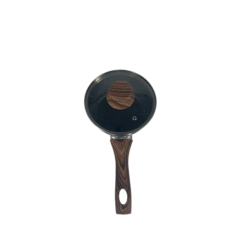 Fitted with a water transfer bakelite handle, the saucepan offers an ergonomic and secure grip. The bakelite material is heat-resistant, remaining cool during stovetop use to prevent burns, and the water transfer finish adds a stylish element that matches the saucepan’s overall design.