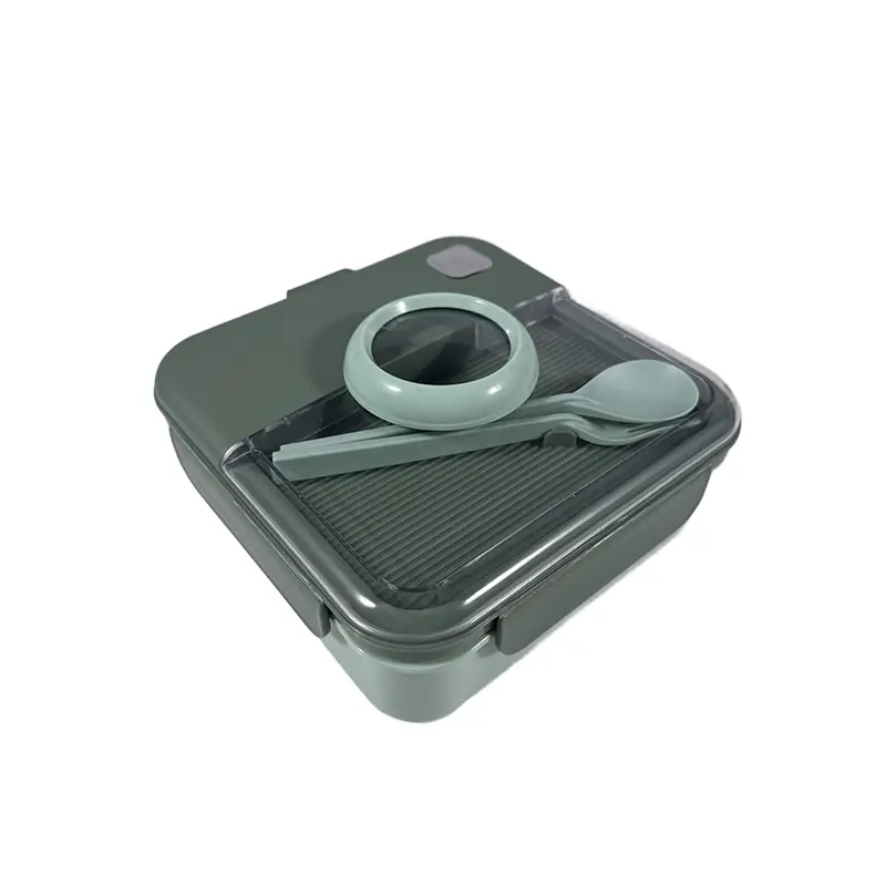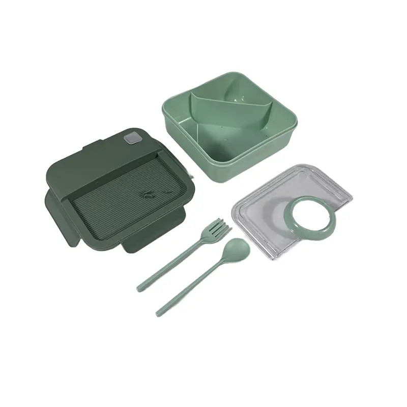 To sum up, this sleek green adult lunch box with utensils is a great option for wholesale. Its elegant aesthetic, well - structured compartmentalization, handy utensil set, and secure sealing mechanism make it a practical and stylish choice for adults. It combines functionality with a touch of elegance, ideal for suppliers.