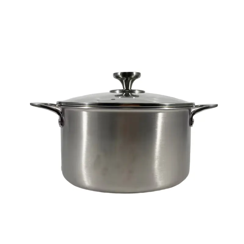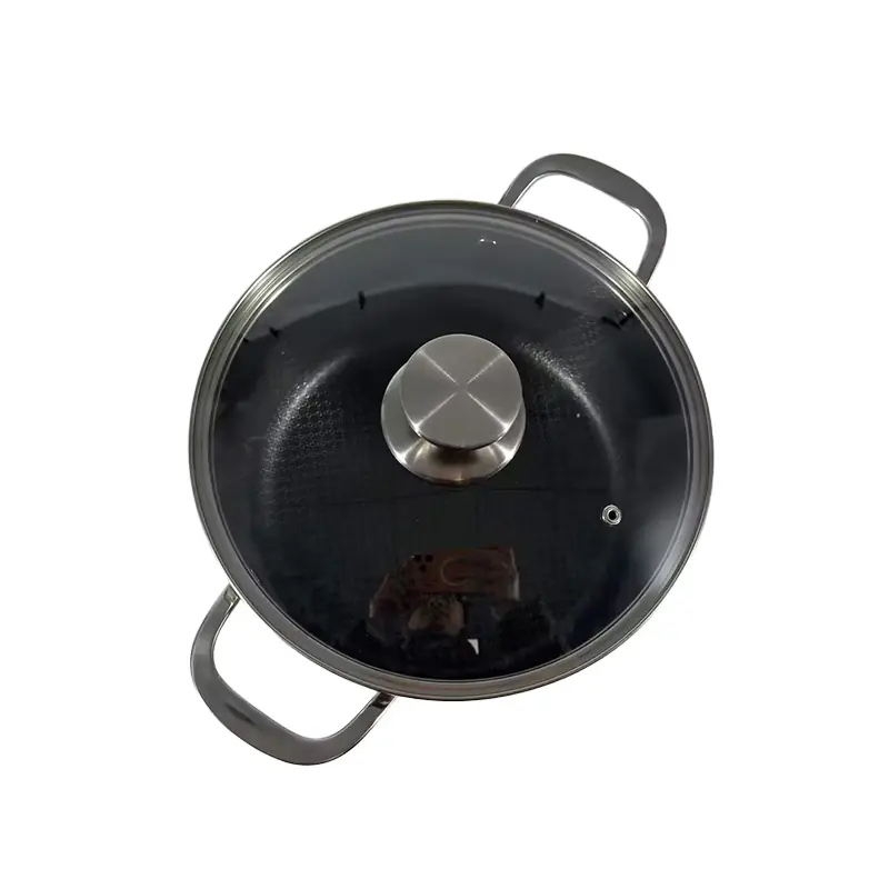 To sum up, this sleek stainless steel tri-ply stock pot with a honeycomb non-stick inner & glass lid is an excellent wholesale option. Its high-end aesthetic, efficient heat conduction, practical dual-handle design, and easy-to-clean features make it ideal for family soups, stews, and daily boiling tasks. It combines functionality and style, perfect for suppliers.