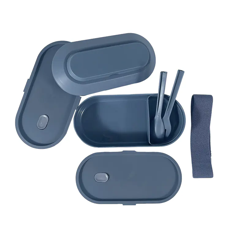 Stylish Navy Blue Double – Layer Lunch Box with Utensils for Wholesale