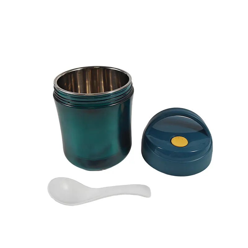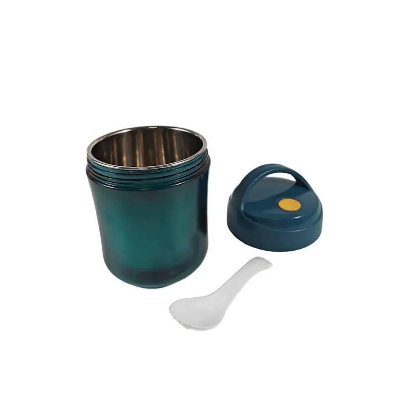 To sum up, this stylish teal insulated food jar with a spoon is a great option for wholesale. Its attractive design, efficient insulation performance, included handy spoon, and convenient handle with secure lid make it a practical and stylish choice for anyone needing a reliable food - carrying solution. It combines functionality with a vibrant aesthetic, ideal for suppliers.