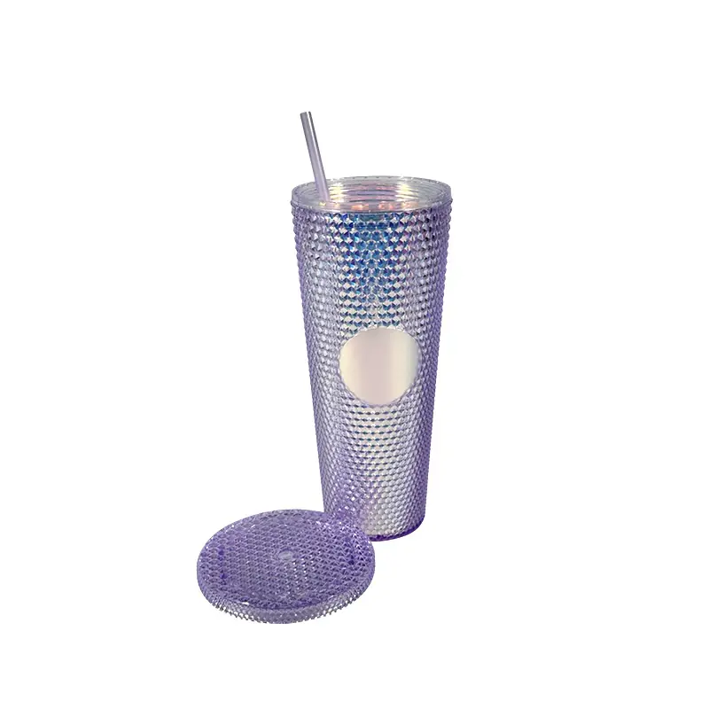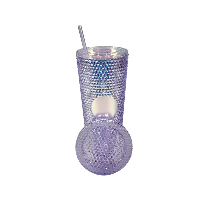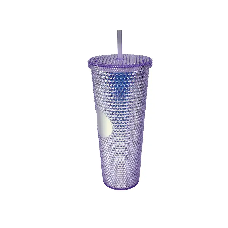 This textured purple plastic tumbler with straw and lid combines a stylish diamond - textured exterior, a convenient integrated straw and lid for spill - free sipping, a translucent design for easy drink monitoring, and eco - friendly reusability. It’s a practical and fashionable choice for anyone looking to stay hydrated in style, fitting seamlessly into active, on - the - go lifestyles while adding a touch of elegance to everyday routines.