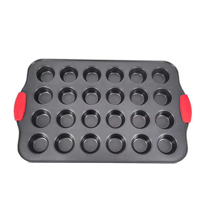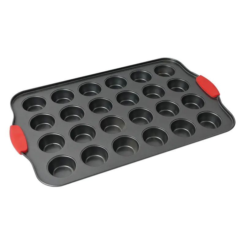 Designed with user safety in mind, the Twenty Four-Cup Cake Pan features heatproof red silicone handles that prevent accidental burns. It’s also stain-resistant and easy to clean, being dishwasher safe, though hand washing is recommended to maximize the lifespan of the pan.
