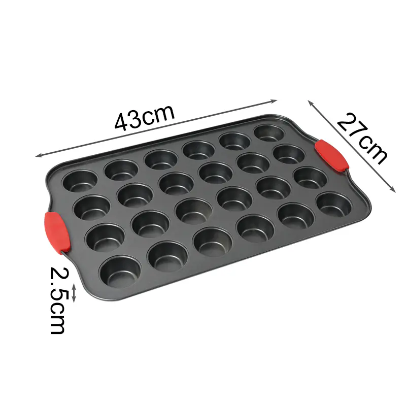 The Twenty Four-Cup Cake Pan is made from durable, BPA-free carbon steel and features a non-stick coating that eliminates the need for butter, oil, or cooking spray. This ensures quick and effortless food release, allowing you to enjoy your baked treats without any hassle. Plus, it does not emit any unpleasant odors or smells during baking.