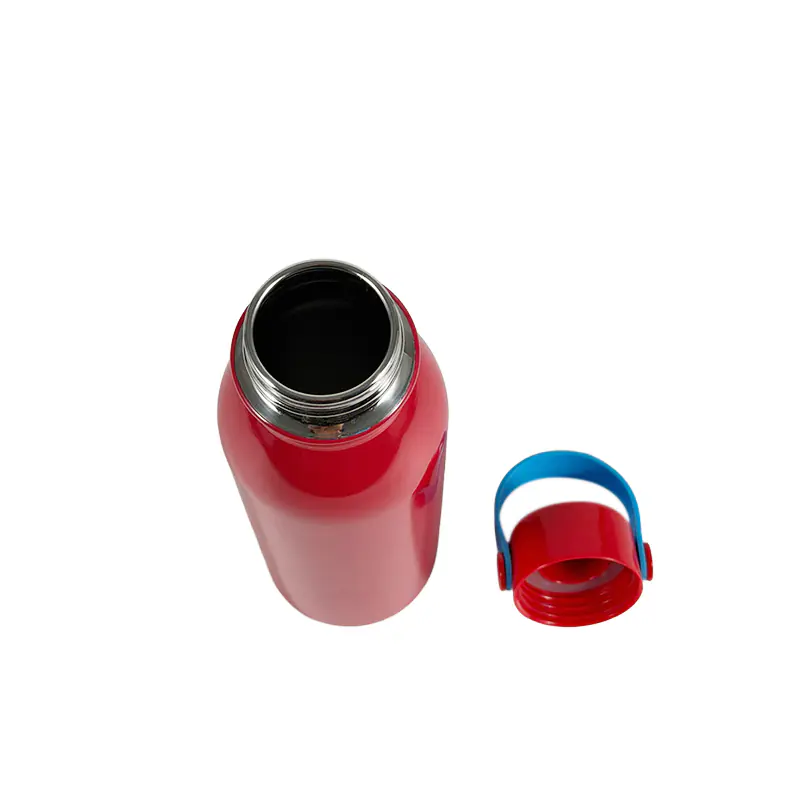 To sum up, this vibrant red stainless steel water bottle with a blue carry handle is an excellent wholesale option. Its eye - catching design, premium stainless steel construction, practical carry handle, and leak - proof, easy - to - clean features make it a practical and stylish choice for anyone needing a reliable hydration solution. It combines functionality with a bold aesthetic, ideal for suppliers.