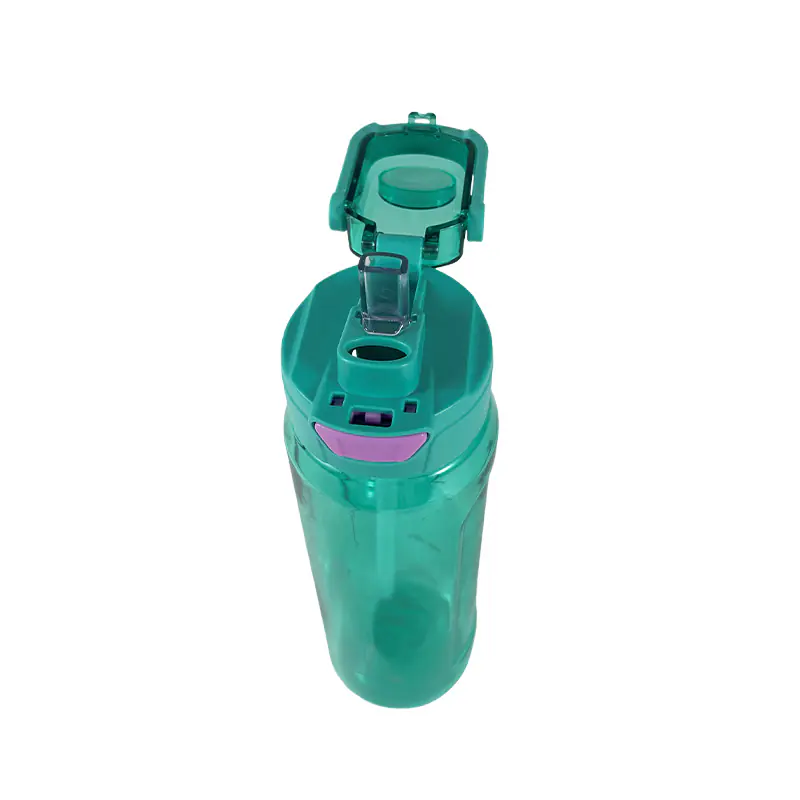 This vibrant teal transparent plastic water bottle made of high-quality food-grade plastic, it’s lightweight, shatter-resistant, and built for long-lasting use. The material is safe for direct beverage contact, making it ideal for daily hydration.