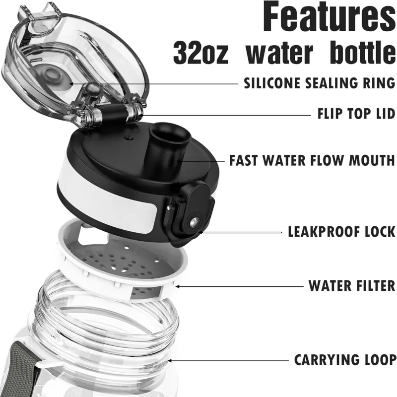 The water bottle with time marker secure, leak-proof lid ensures that you can toss it into your bag without worrying about spills or messes. Stay hydrated on the go without the hassle